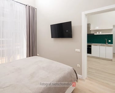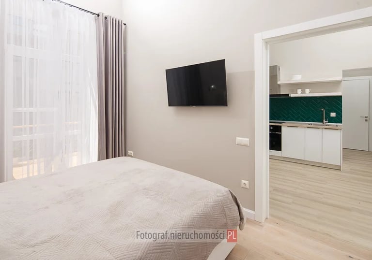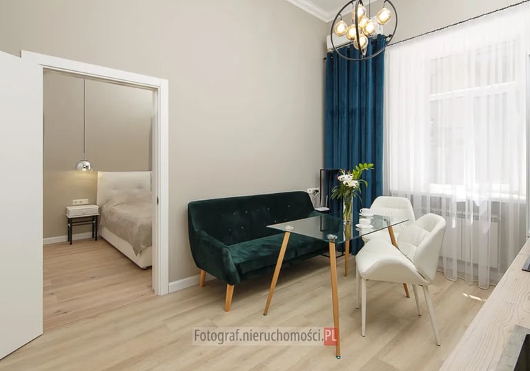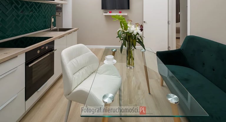 Naturalne światło to kluczowy element moich zdjęć. Staram się fotografować w momentach dnia, kiedy światło jest najbardziej korzystne, co pozwala na uzyskanie jasnych i przejrzystych zdjęć. W przypadku tej kawalerki, naturalne światło wpadające przez duże okna dodaje wnętrzu przestronności i świeżości.