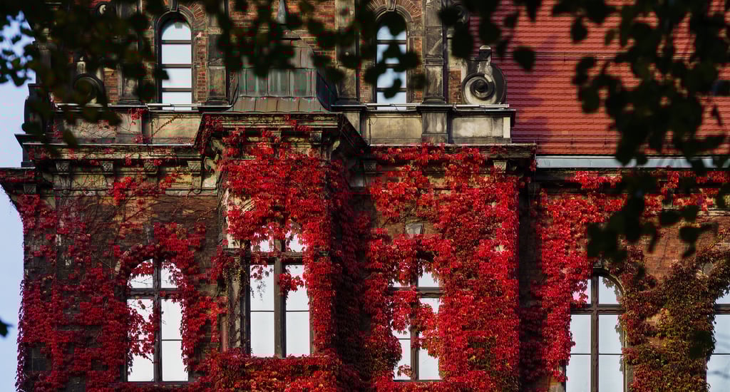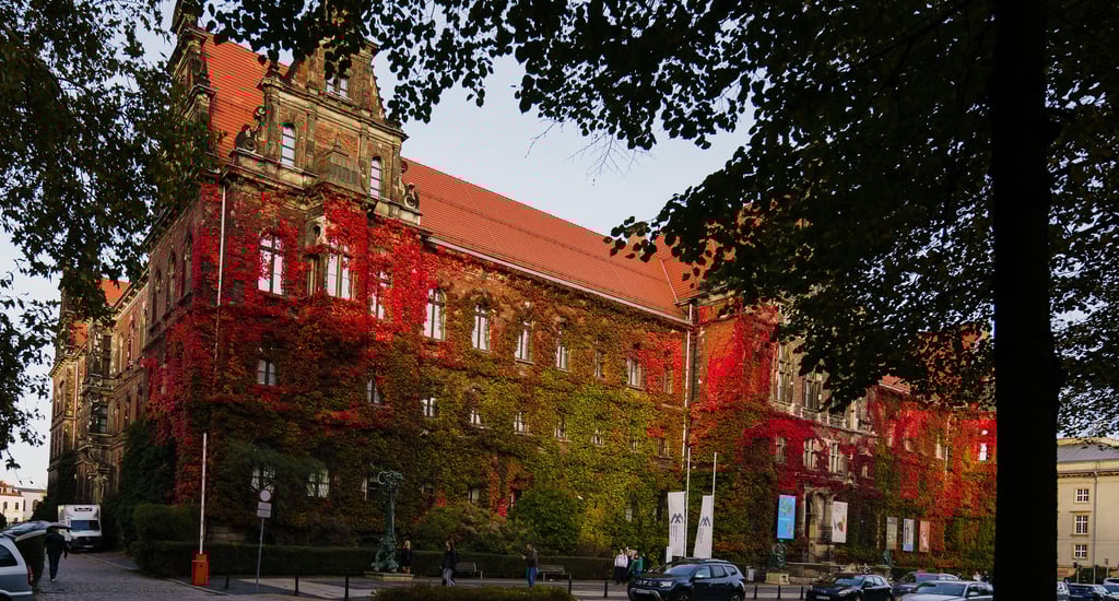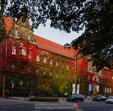 Muzeum Narodowe we Wrocławiu, założone w 1947 roku, mieści się w przepięknym budynku neogotyckim, zaprojektowanym przez Karla Lüdeckego pod koniec XIX wieku. Sama architektura jest arcydziełem, z wysokimi łukami, misternymi detalami kamieniarskimi i ogromnymi oknami, które wpuszczają naturalne światło. Najbardziej uderzającą cechą budynku, szczególnie jesienią, jest czerwone dzikie wino, które porasta jego ściany. Gdy winorośle zmieniają barwy na głęboki karmazyn, budynek przypomina żywe dzieło sztuki, doskonale wpisujące się w malowniczy jesienny krajobraz Wrocławia.